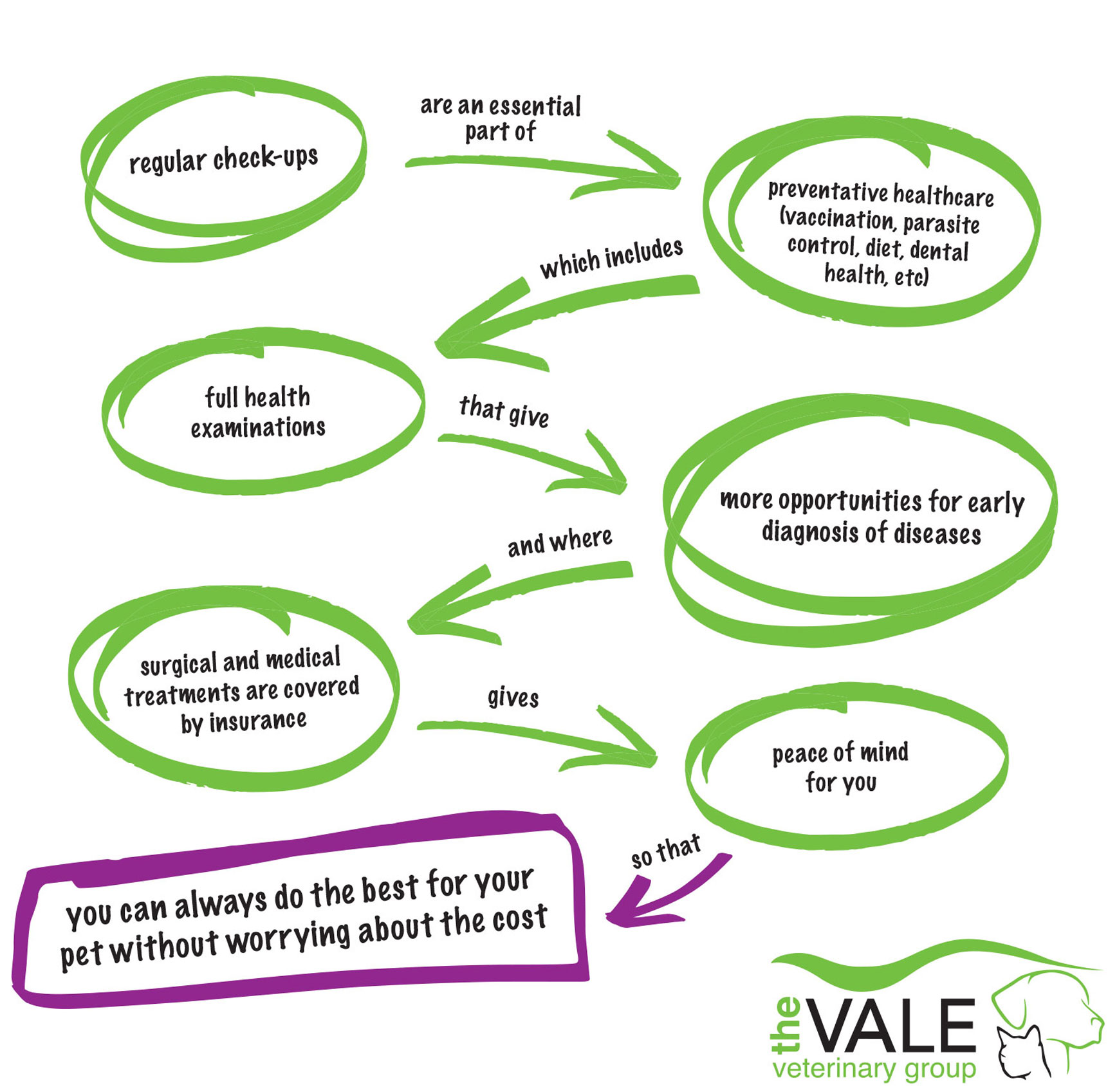 - reassurance that if something doesn’t seem quite right (maybe your pet seems a little under the weather?) that you can see a vet any time, just to be sure that it’s nothing more serious.