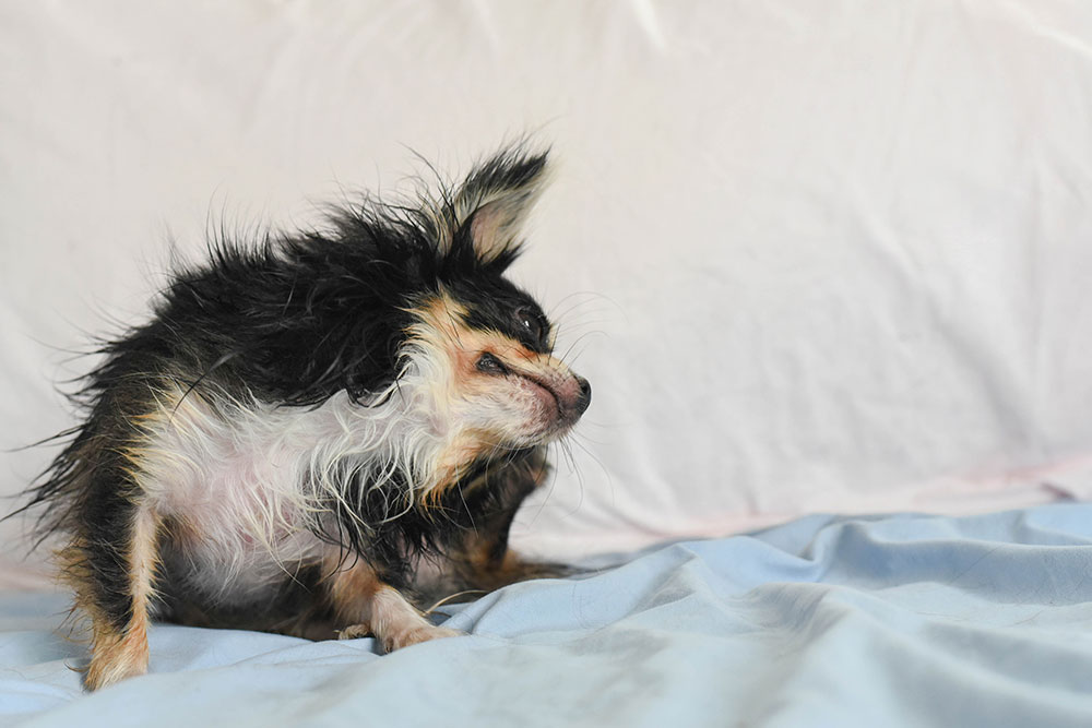 - Thinning coat and patchy hair loss